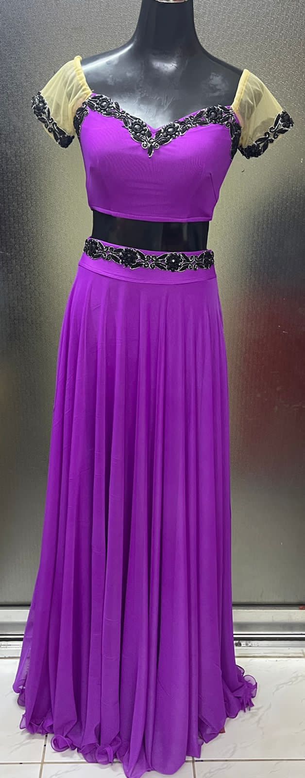 This Dreamy Drape Lehenga Choli is a vision in vibrant purple. The delicate embroidery and sheer sleeves add a touch of elegance, while the flowing skirt creates a captivating look that is sure to turn heads. Perfect for any special occasion where you want to make a statement.