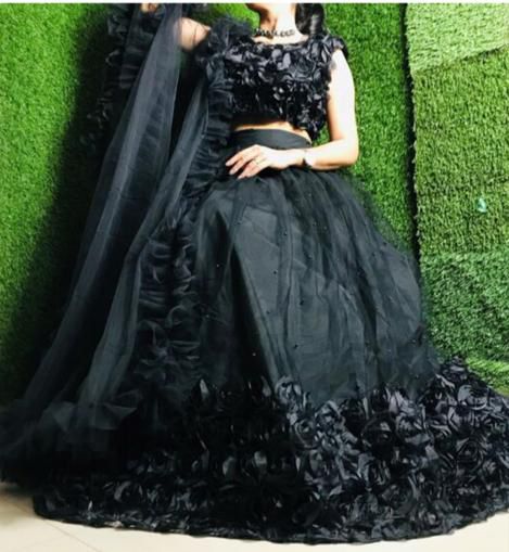Bloom in the darkness with the Midnight Bloom Lehenga Choli. The rich velvet fabric and intricate embroidery create a look that is both luxurious and captivating. The deep midnight blue hue adds a touch of mystery and elegance, making it perfect for any special occasion.