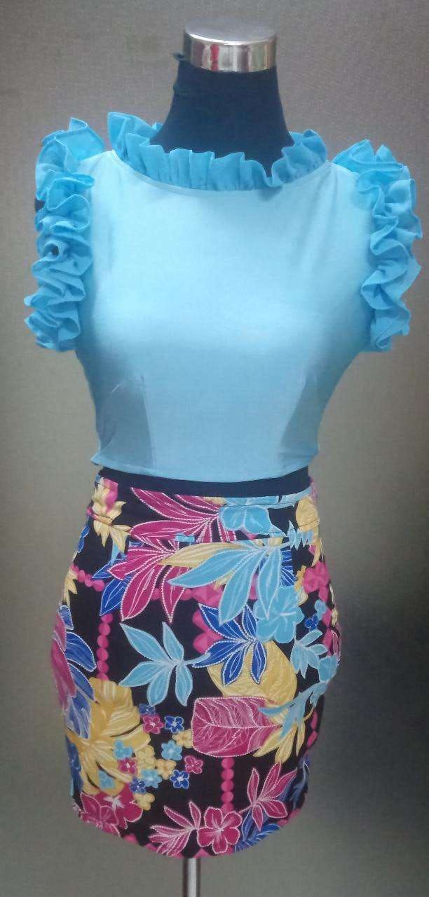 Step into spring with our Spring Bloom Ensemble. This stylish two-piece set features a light blue crop top with charming ruffled sleeves and a ruffled neckline. Paired with a high-waisted, fitted skirt adorned with a vibrant floral pattern, this outfit combines elegance and playfulness. The skirt showcases a delightful array of yellow, pink, blue, and green flowers against a black background, creating a striking contrast with the solid-colored top. Perfect for any daytime event or casual outing, this ensemble is a must-have for fashion enthusiasts looking to make a statement.