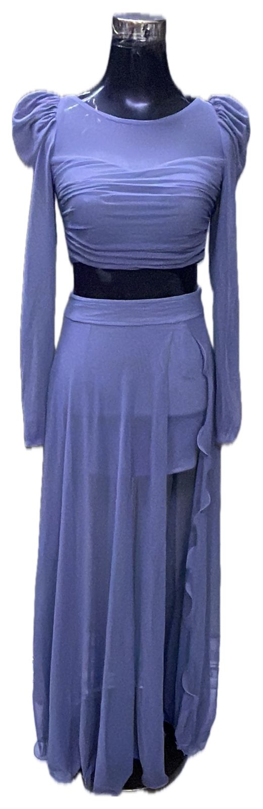 grey two piece Indo western high waist two piece with full sleve with stretch net