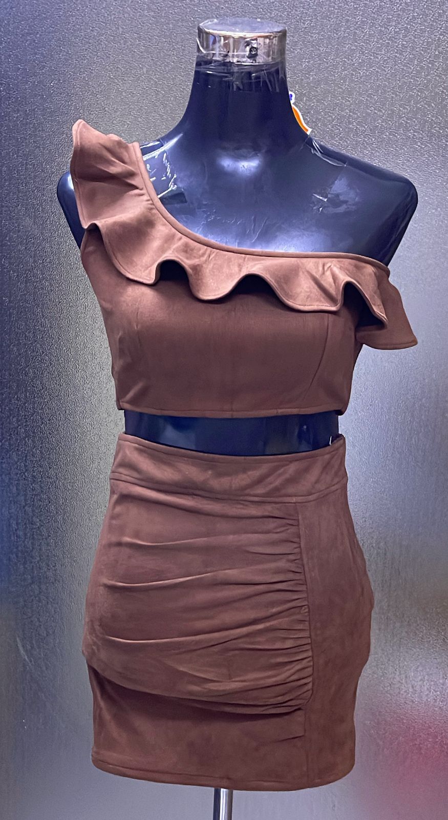 Be the first to review “Leather sleeves less with frill Two piece short dress”