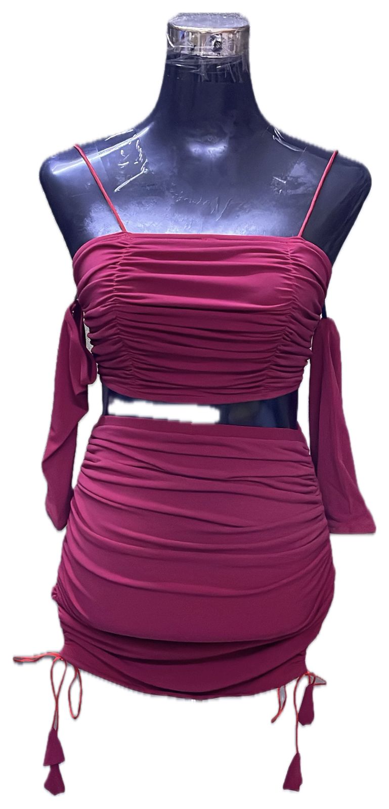Be the first to review “Wine full sleeves with frill Two piece short dress”
